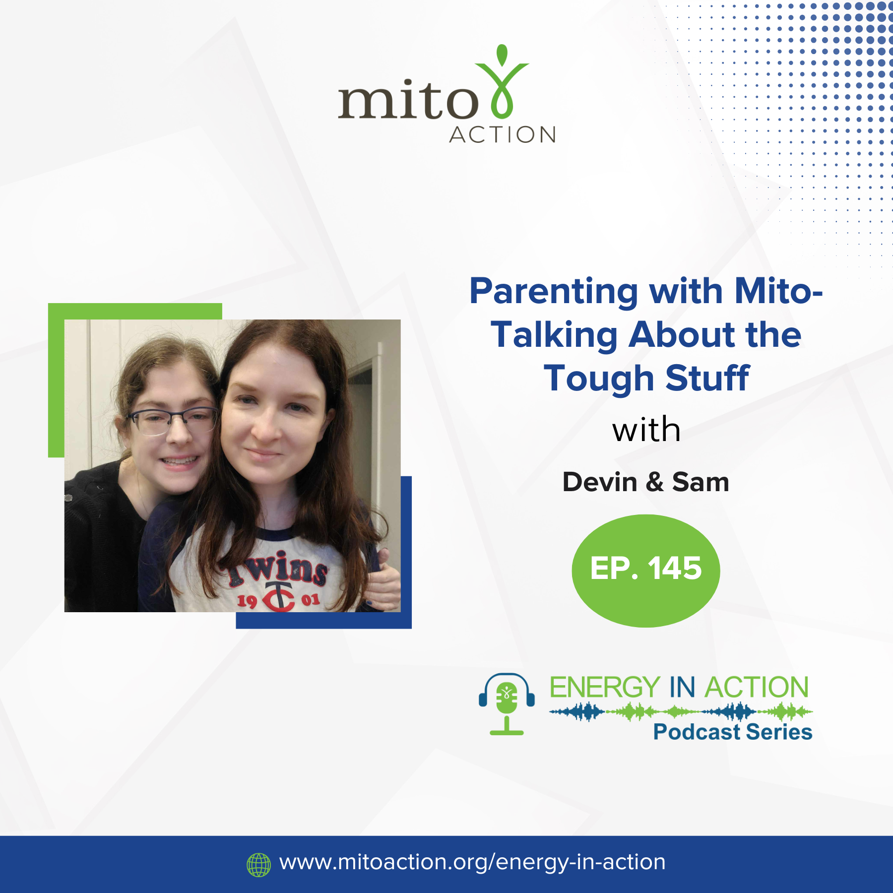 Our podcast series—Energy In Action—consists of conversations with patients, families, researchers, and thought leaders in the mitochondrial disease communities. These podcasts will give you a glimpse into the lives of families affected by mitochondrial disease and the latest in clinical trials, diagnosis, research, and the advancement of therapies. Once each month, join us for our special episode of Parents as Rare to hear from parents affected by a rare disease themself and how they navigate caring for their family and managing their own care.